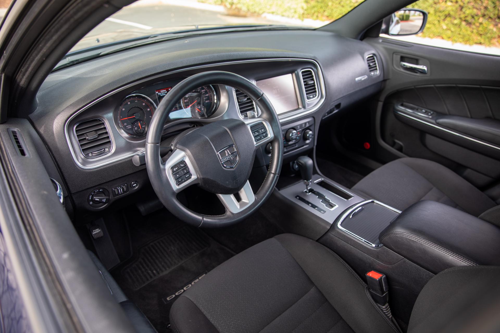 Finished in a striking Blue exterior, this 2013 Dodge Charger R/T 392 near me turns heads from every angle. The body is straight and clean with a glossy factory finish. Muscle car styling cues—such as the signature front grille, sculpted hood, and integrated rear spoiler—emphasize its performance pedigree while still offering modern sedan functionality.