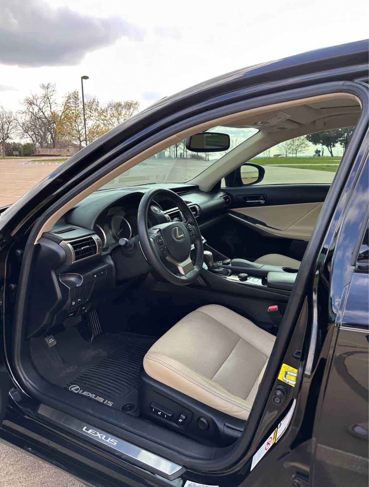 This 2014 Lexus IS 250 for sale near me stands out with its black exterior finish, LED headlights, and alloy wheels that enhance its sporty yet refined look. The tinted windows not only add to the car’s luxurious appearance but also offer UV protection and increased privacy. From every angle, this Lexus reflects attention to detail and craftsmanship.